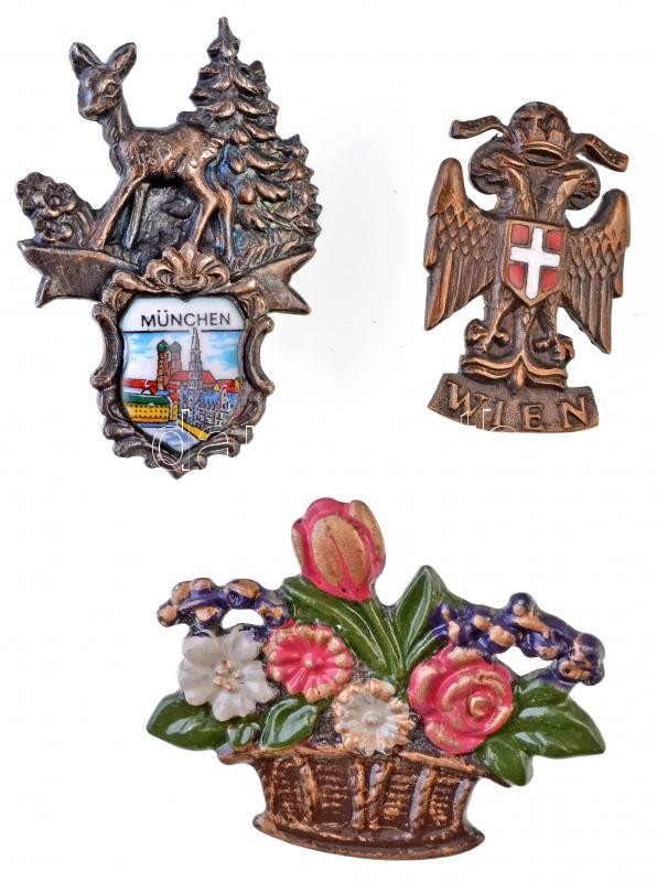 3db-os német és osztrák jelvény tétel, közte cserkészjelvény is T:2 3pcs of German and Austrian badges, including scout badge C:XF