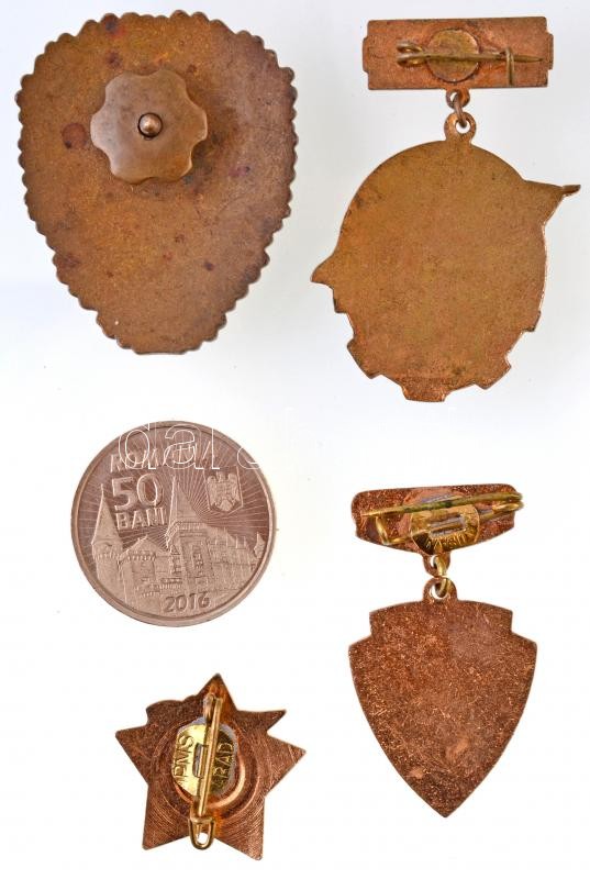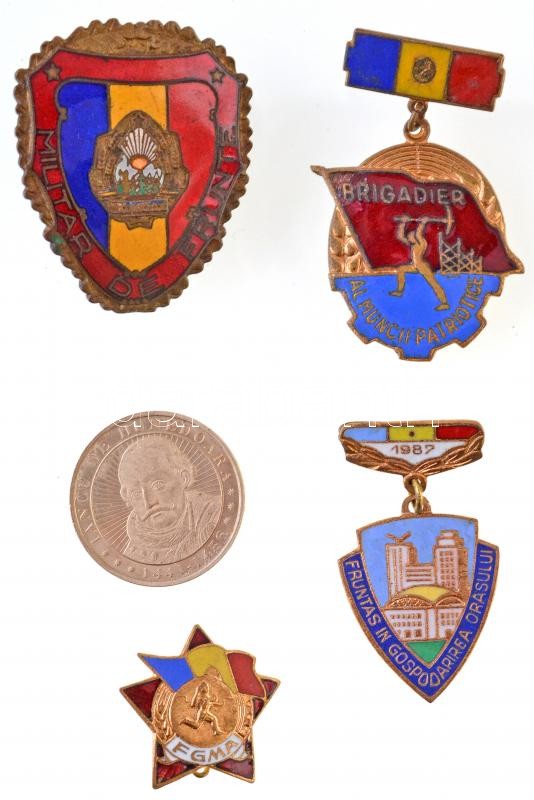 Románia 5db-os vegyes fémpénz, jelvény és kitüntetés tétel T:1-,2 Romania 5pcs of various coins, badges and decorations C:AU,XF