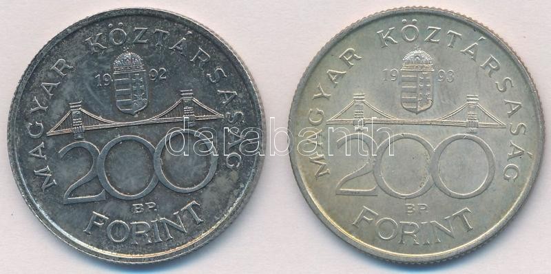 1992-1993. 200Ft Ag "MNB" (2x) T:2 patina