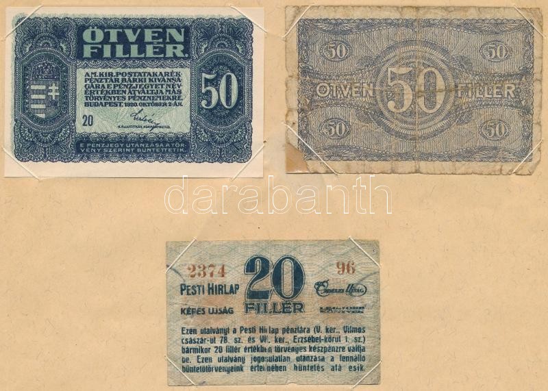 34db-os vegyes magyar és külföldi bankjegy és szükségpénz tétel, papír albumban T:vegyes