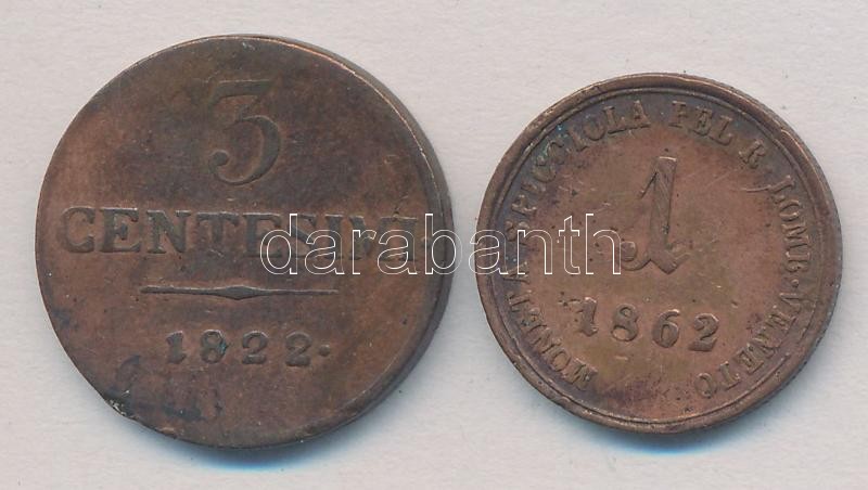 Description: Olasz Államok / Lombardia-Velence 1822M 3c Cu + 1862A 1S Cu T:2-,3 ph.