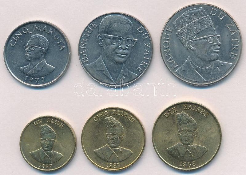 https://www.darabanth.com/en/326-Online-auction/326.0/Numismatics/Worldwide-silver-and-metal-coins~2000013/Zaire-1976-1988-5m-10Z-6xklf-T1--Zaire-1976-1988-5-Makuta-10-Zaires-6xdiff-CAU~II1816630
