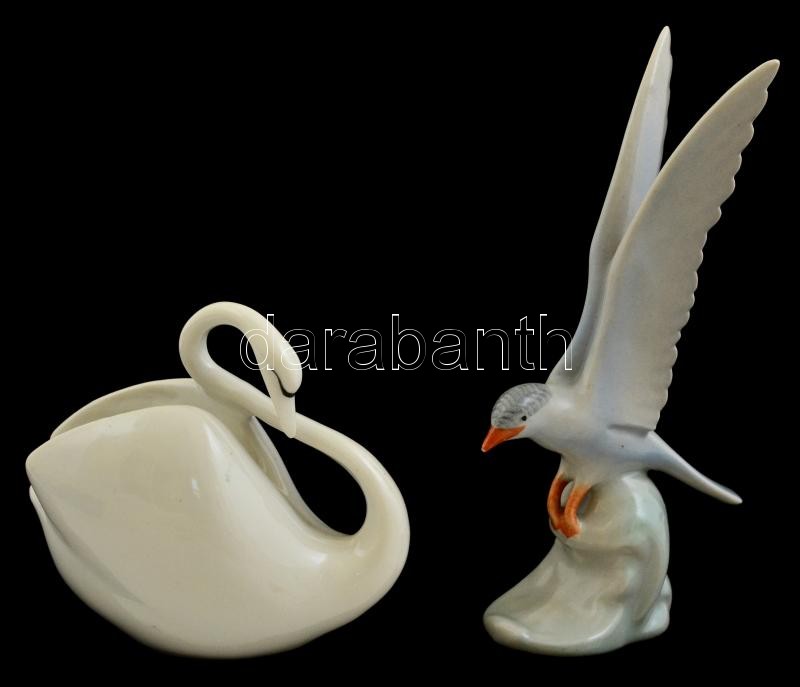 2 db porcelán: Hollóházi hattyú, kézzel festett, jelzett, apró kopásokkal, m: 8 cm + Drasche sarki csér, kézzel festet, jelzett, apró kopásokkal, m: 14,5 cm