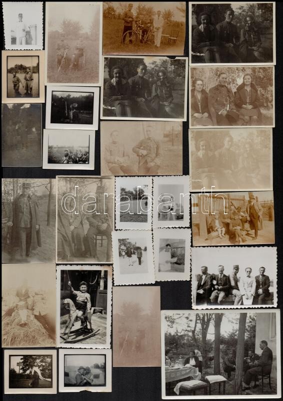 cca 1910-1940 Vegyes militária tétel, db, közte egyenruhásokat, katonákat ábrázoló fotók, 42 db, a hátoldalakon részben feliratozva, részben dátumozva, 13x9 cm és 4x5 cm, és 3 db Rátky László alezredesnek szóló levél, változó állapotban.