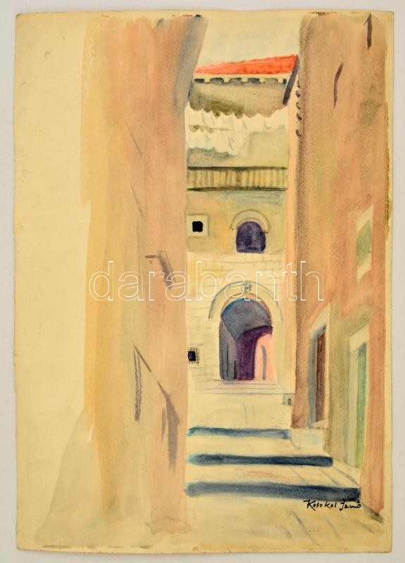 Koszkol jelzéssel: Boltíves átjáró. Akvarell, papír, 42×29 cm