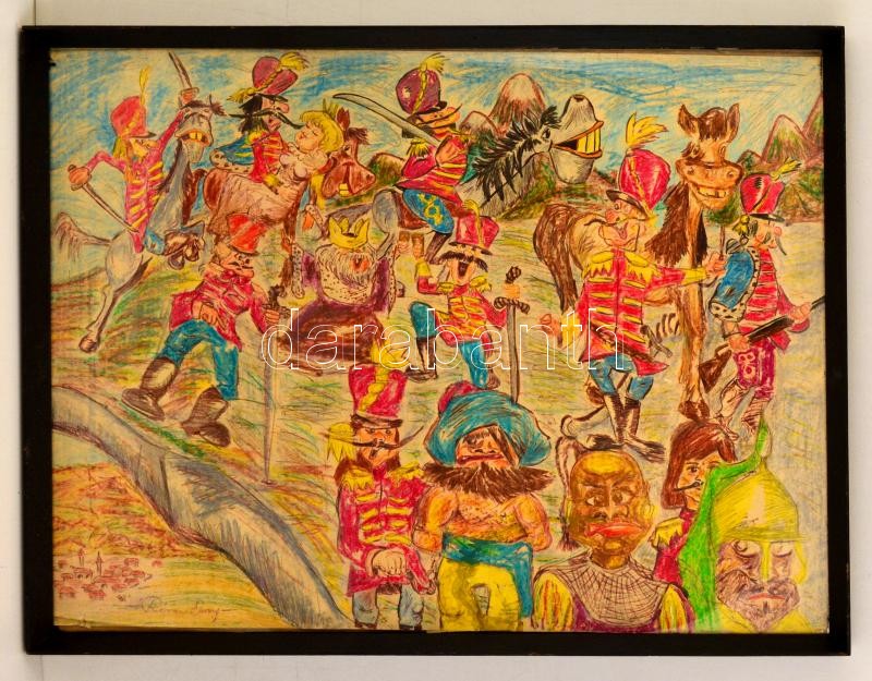https://www.darabanth.com/en/326-Online-auction/326.0/Other-collectibles/Paintings-and-graphics~500001/Rona-jelzessel-Huszarok-Vegyes-technika-papir-uvegezett-keretben-60C39784-cm~II1813344
