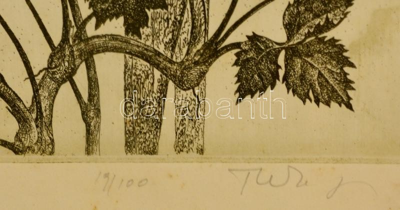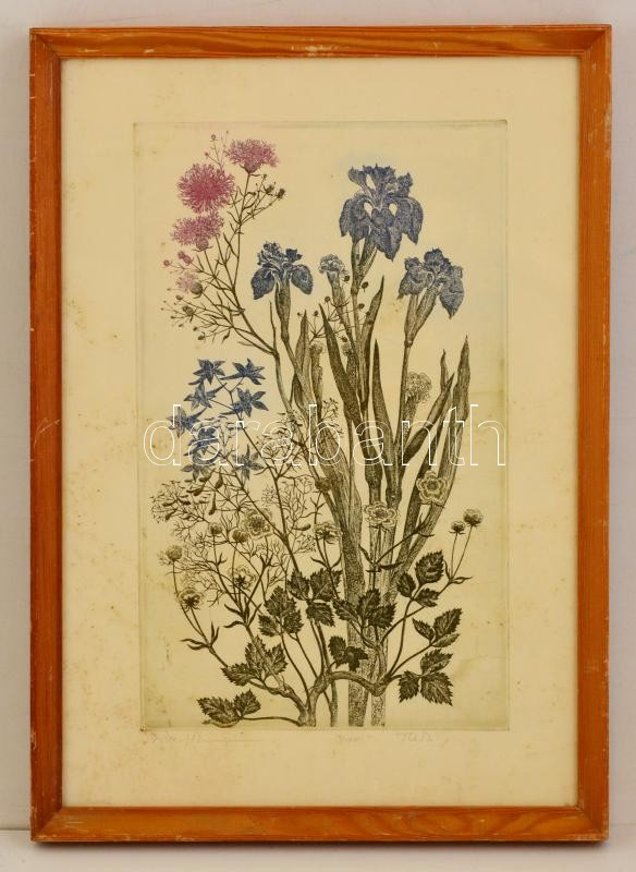 Tuka László (1924-2007): Írisz. Rézkarc, papír, jelzett, foltos, üvege...