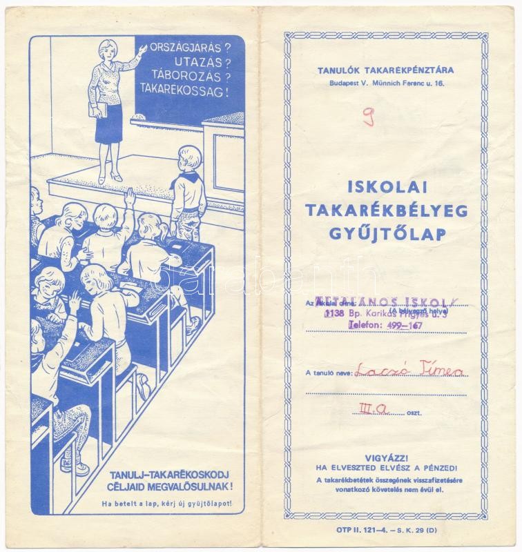 1983 Iskolai takarékbélyeg gyűjtőlap 5 db takarékbélyeggel / School sa...