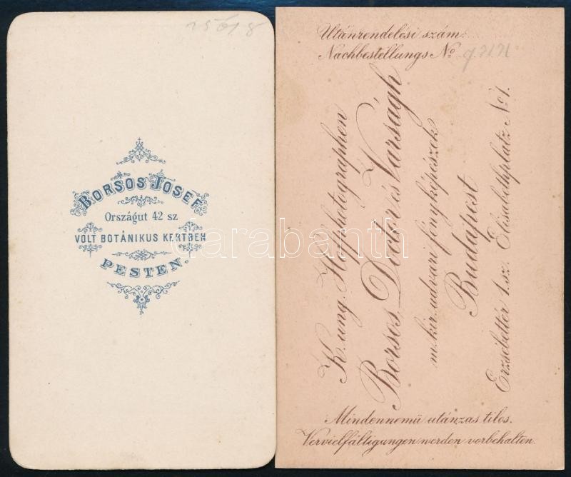 cca 1867 Borsos és Tsai György pesti műtermében készült, 2 db vizitkár...