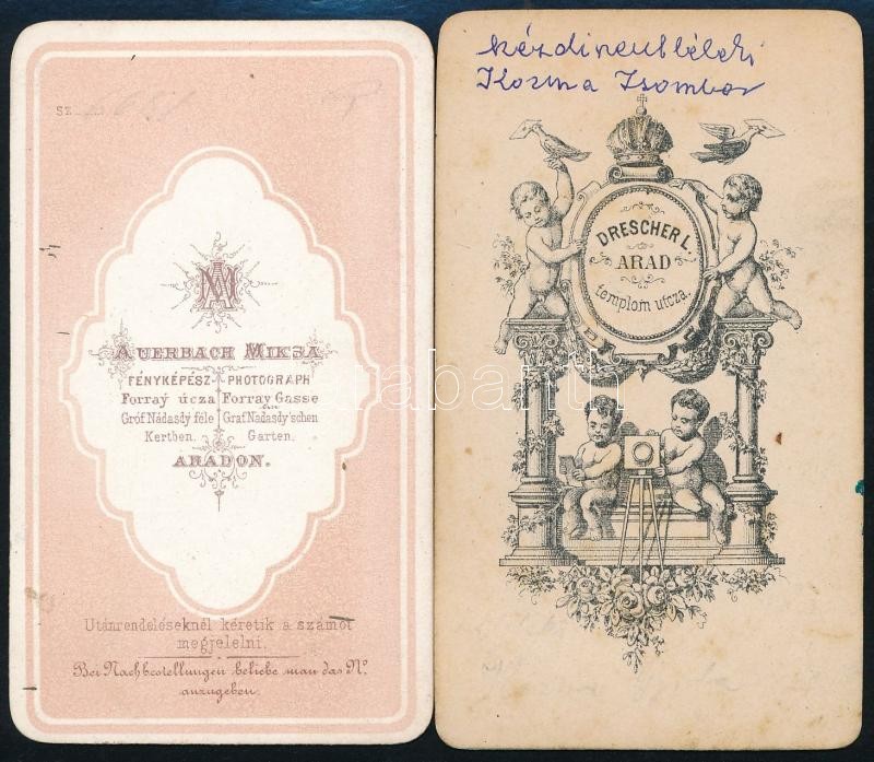 cca 1868 Aradi műtermekben készült, 2db vizitkártya méretű, feliratozo...