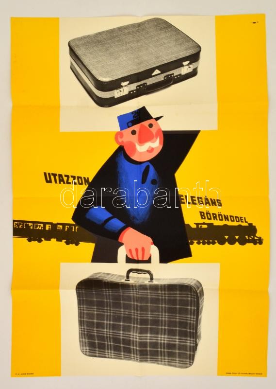 Utazzon elegáns bőrönddel, plakát, Bp., Magyar Hirdető, Zrínyi Nyomda, hajtásnyommal, 82x57 cm.