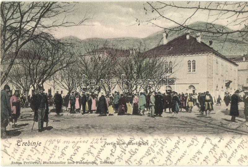 1904 Trebinje, Partie vom Marktplatz / marketplace, crowd. Anton Pericevic ed. + K.u.K. Milit. Post. Trebinje (EK)