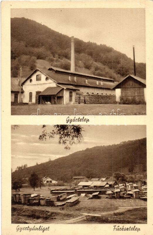 Gyertyánliget, Kabola Polyána, Kobyletska Poliana (Máramaros); Gyártelep, Fűrésztelep. Hangya Szövetkezet kiadása / sawmill, factory plant + kétnyelvű bélyegző / bilingual stamp (EK)