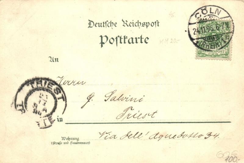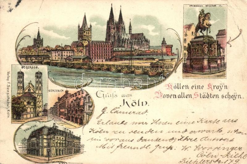 Description: 1896 (Vorläufer!) Köln, Cologne; Friedrich Wilhelm III., Gürzenich, Theater, St. Gereon / monument, theatre, church. F. Szesztokal Art Nouvau, floral, litho (EK)