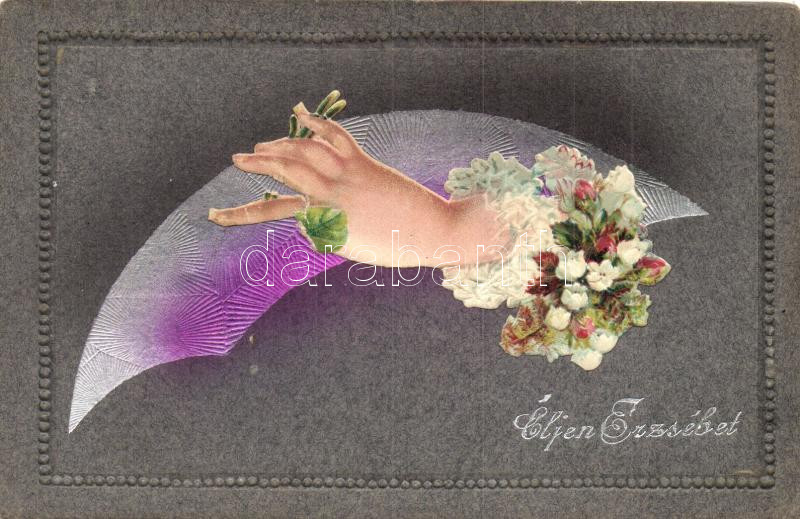 'Éljen Erzsébet' / Nameday greeting postcard, litho (kopott ...