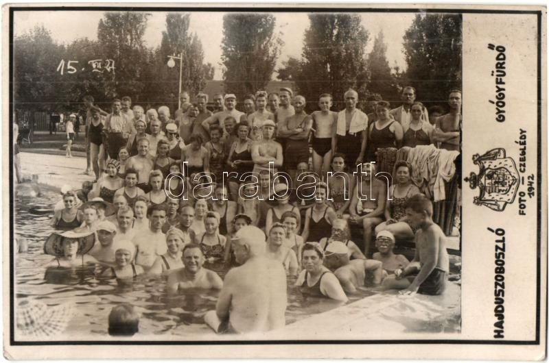 1942 Hajdúszoboszló, Gyógyfürdő, fürdőzők csoportképe, Foto Czeglédy, ...