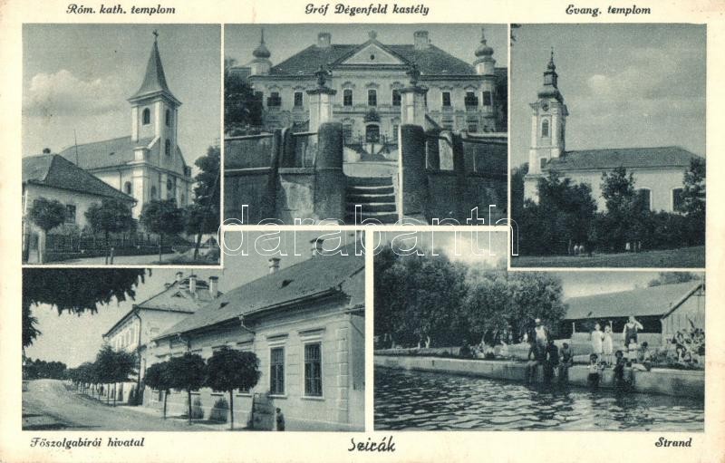 Szirák, Római katolikus templom, Evangélikus templom, Gróf Dégenfeld kastély, Főszolgabírói hivatal, Strand, fürdőzők (EK)