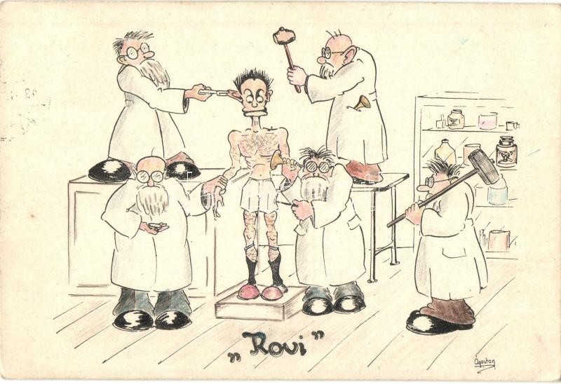 1943 "Rovi" Második világháborús humoros katonai lap., orvosi vizsgálat / WWII Hungarian humorous military graphic art postcard s: Ágoston (EK)