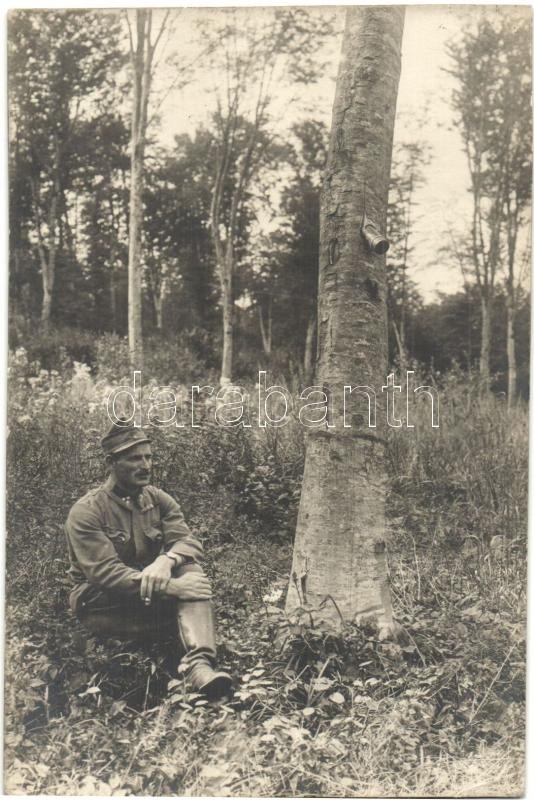 Eltévedt löveg a fatörzsben, első világháborús osztrák-magyar katonati...