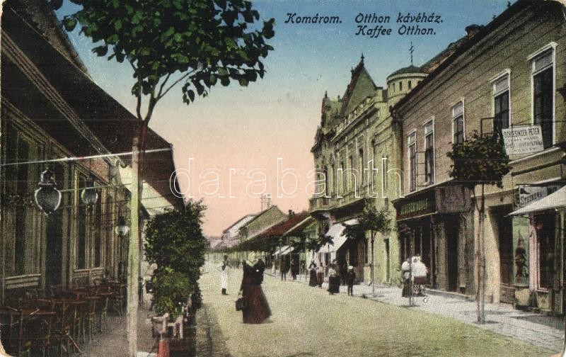 1921 Komárom, Komárno; Otthon kávéház, Schlesinger Péter, Steiner és Deutsch Adolf üzlete / cafe, shops