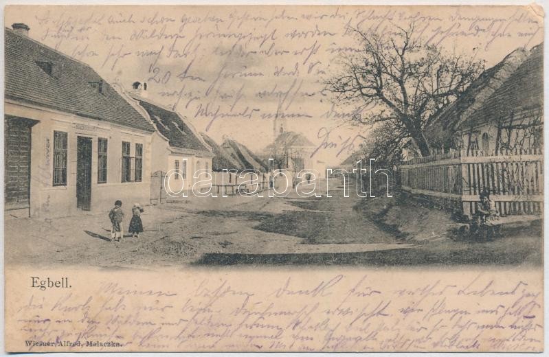Egbell, Gbely; Fő utca, Hohenberg üzlete, Római katolikus templom. Wiesner Alfred kiadása / main square, shops, Catholic church (EK)