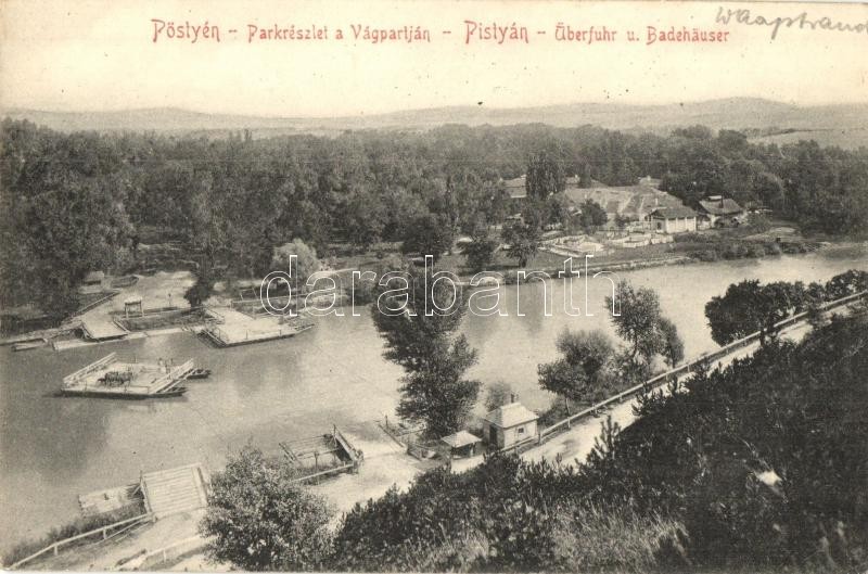 Pöstyén, Pistany, Piestany; Überfuhr / Átkelés a Vág folyón komppal / ...