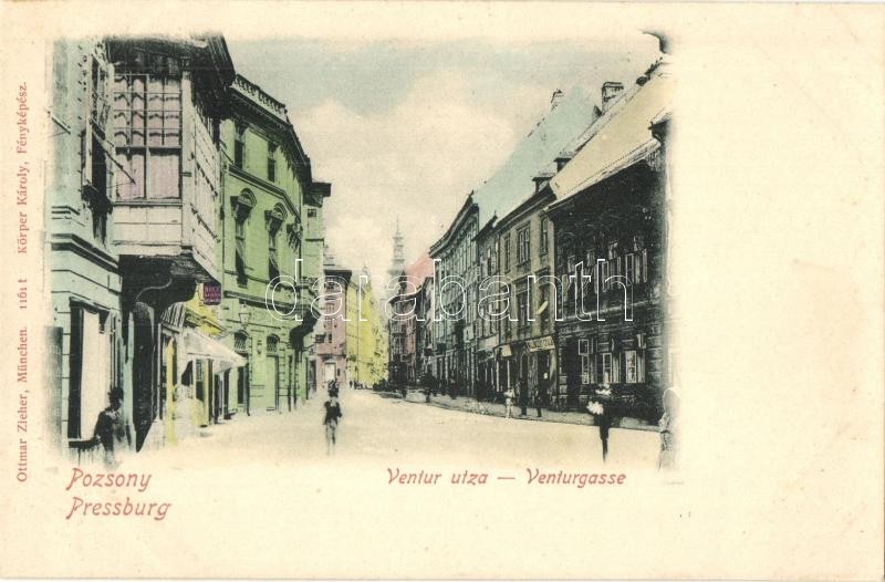https://www.darabanth.com/en/326-Online-auction/326.0/Postcards/Slovakia~2500007/Pozsony-Pressburg-Bratislava-Ventur-utca-Willimszky-Gyula-uzlete-Venturgasse-street-view-~II1816042