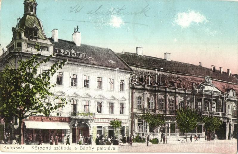 1910 Kolozsvár, Cluj; Nagy Gábor Központi szállodája, Bánffy palota, M...