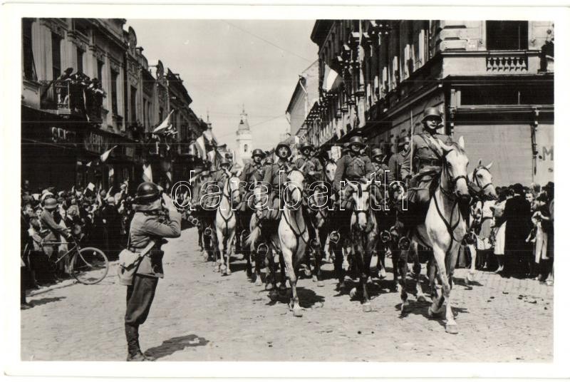 1940 Szatmárnémeti, Satu Mare; bevonulás honvéd lovas katonákkal / ent...