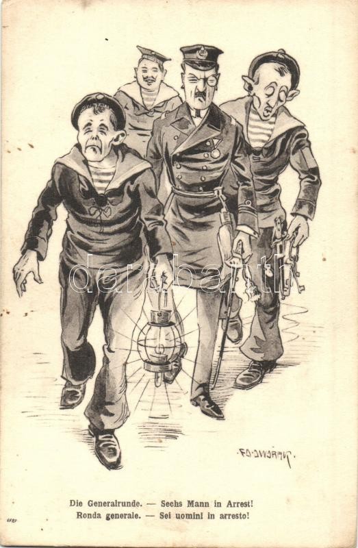 Die Generalrunde - Sechs Mann in Arrest! / Ronda generale - Sei uomini... https://www.darabanth.com/en/326-Online-auction/326.0/Postcards/Warships~2500069/Die-Generalrunde-Sechs-Mann-in-Arrest-Ronda-generale-Sei-uomini-in-arresto-KuK-Kriegsma~II1815010