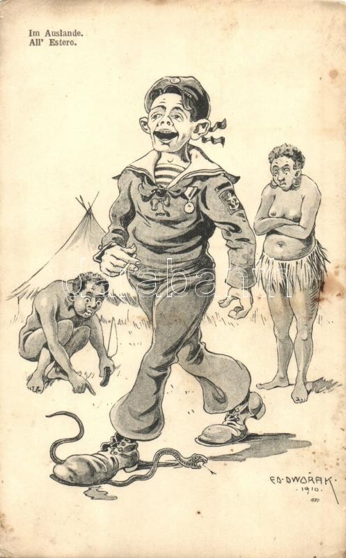 Im Auslande / All' Estero / K.u.K. Kriegsmarine. Africa, mariners humour art postcard. C. Fano 5861. s: Ed. Dworak (EK)