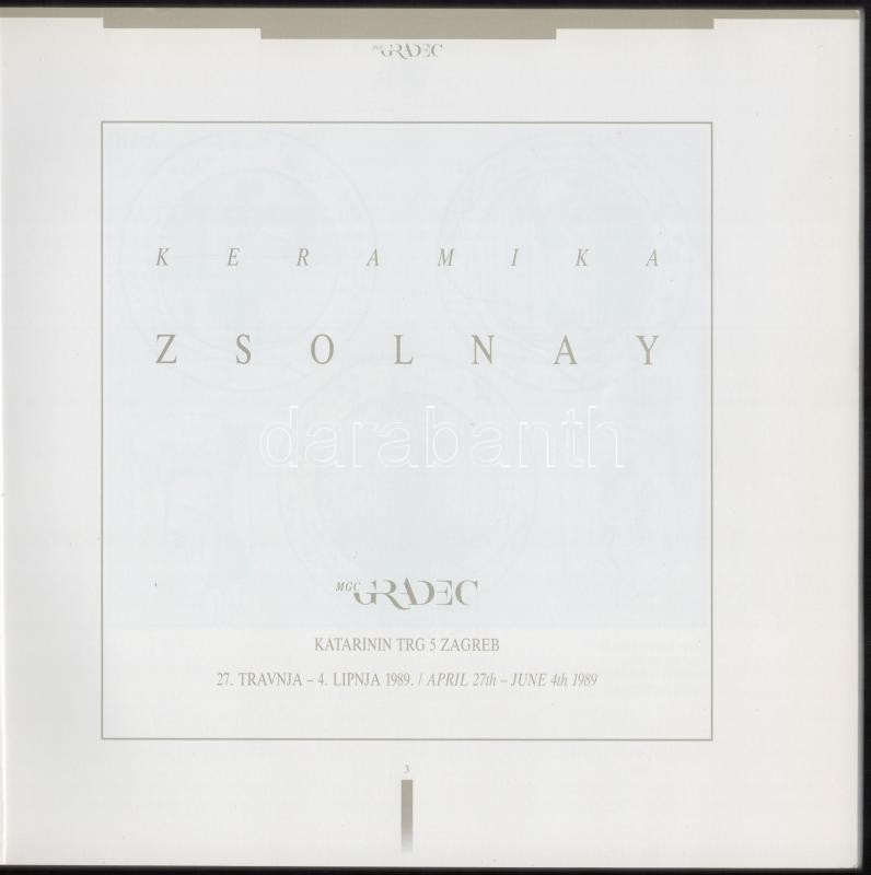 Keramika Zsolnay. Zagreb, 1989, MGC Gradec. Horváth nyelvű kiállítási ... https://www.darabanth.com/en/327-Online-auction/327.0/Books/Books-Architecture-Art~2500006/Keramika-Zsolnay-Zagreb-1989-MGC-Gradec-Horvath-nyelvu-kiallitasi-katalogus-Gazdag-kepan~II1820495