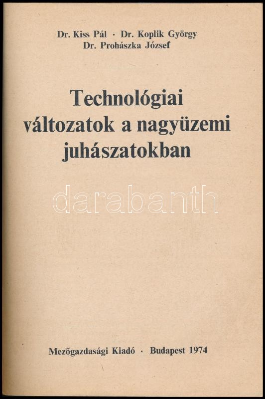 Dr. Kiss Pál-Dr. Koplik György-Dr. Prohászka József: Technológiai vált... https://www.darabanth.com/en/327-Online-auction/327.0/Books/Books-Gastronomy-and-Gardening~2500007/Dr-Kiss-Pal-Dr-Koplik-Gyorgy-Dr-Prohaszka-Jozsef-Technologiai-valtozatok-a-nagyuzemi-juhC3~II1807178