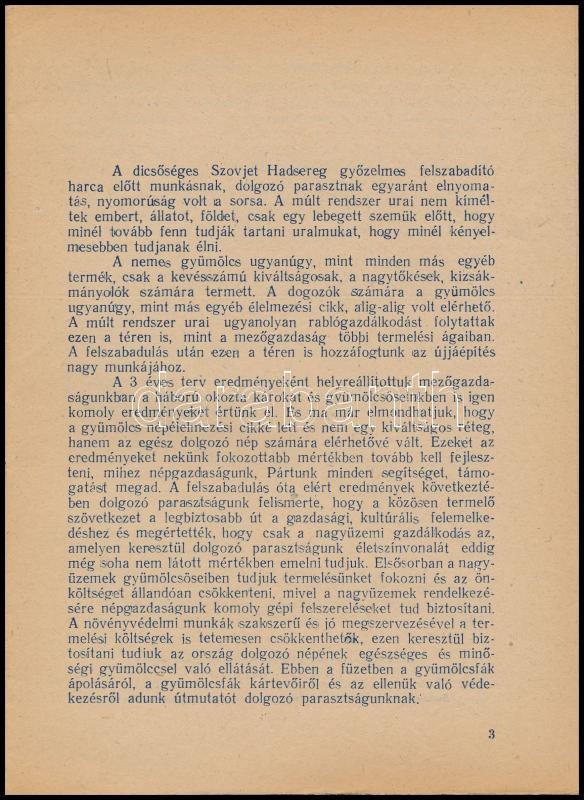 Útmutató a gyümölcstermesztéshez. Bp.,é.n., Földművelésügyi Minisztérium Tájékoztatási Osztálya, (Szikra-ny.), 23 p. Kiadói papírkötés, jó állapotban.