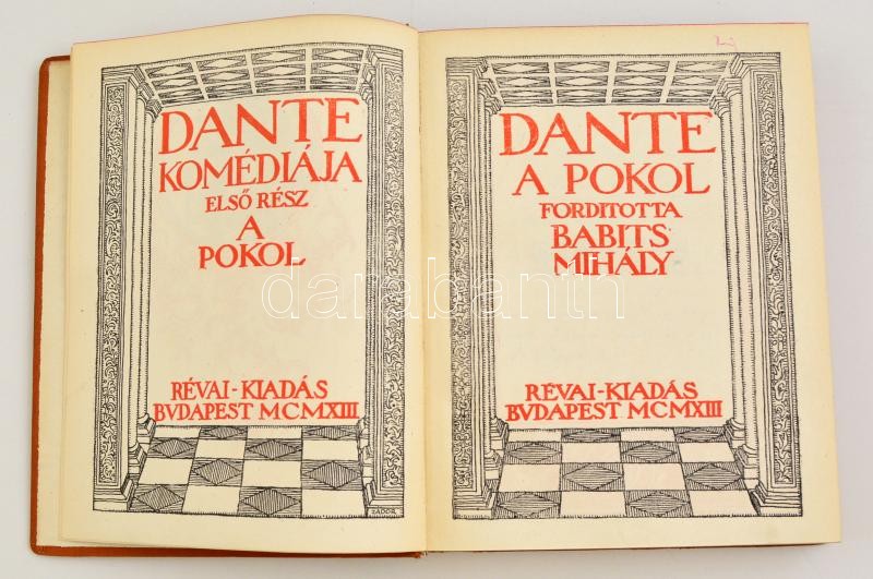 Dante Komédiája I. kötet: A pokol. Fordította Babits Mihály. Bp., 1913... https://www.darabanth.com/en/327-Online-auction/327.0/Books/Books-Other-rarities~2500019/Dante-Komediaja-I-kotet-A-pokol-Forditotta-Babits-Mihaly-Bp-1913-Revai-A-fordito-ded~II1791532