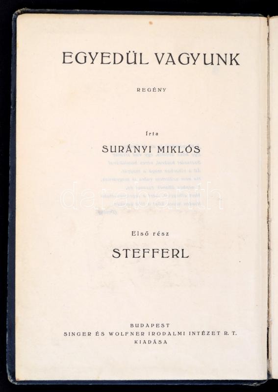 Surányi Miklós: Egyedül vagyunk. I-III. rész. (egybekötve). I.rész: St... https://www.darabanth.com/en/327-Online-auction/327.0/Books/Books-Other-rarities~2500019/Suranyi-Miklos-Egyedul-vagyunk-I-III-resz-egybekotve-Iresz-Stefferl-IIresz-Grof-~II1758644