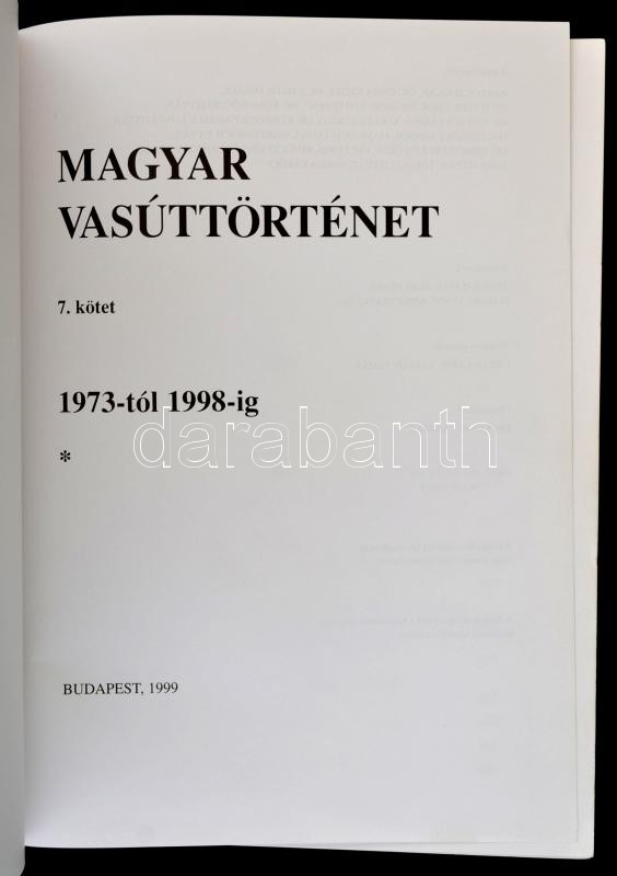 Magyar Vasúttörténet 7. kötet: 1973-től 1998-ig. Bp.,1999, MÁV-Közlekedési Dokumentációs Kft. Kiadói aranyozott műbőr-kötés.