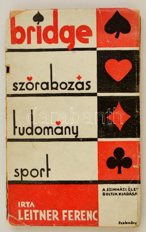 Leitner Ferenc: Bridge, Szórakozás. Tudomány. Sport. Bp., 1932, Szinházi Élet Boltja. (Viktória-ny.) 151 l. Szövegközti ábrákkal. Fűzve, kiadói borítóban. Gerince sérült