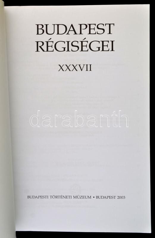 Budapest Régiségei XXXVII. Szerk.: Hanny Erzsébet. Bp., 2003, Budapesti Történeti Múzeum. Kiadói papírkötés. A Budapesti Történeti Múzeum Évkönyve.