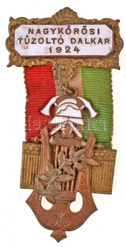 ~1920. "Nagykőrösi Tűzoltó Dalkar 1924" zománcozott réz jelvény szalagon (39x78mm) T:2