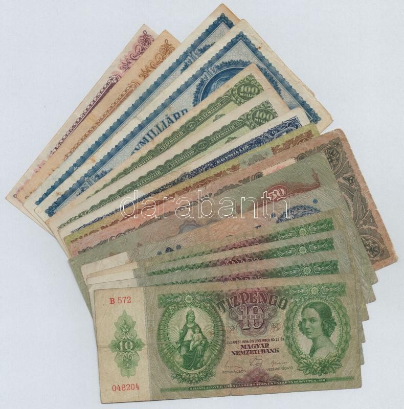 Vegyes: 15db-os pengő bankjegy tétel, közte 2db adópengő T:3,3-