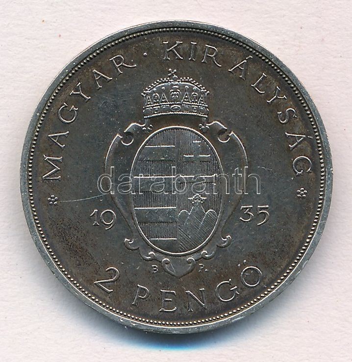 https://www.darabanth.com/en/327-Online-auction/327.0/Numismatics/Hungarian-coins-and-coins-with-Hungarian-mint-marks~2000008/1935-2P-Ag-Pazmany-T2-patina-ph-Adamo-P7~II1791119