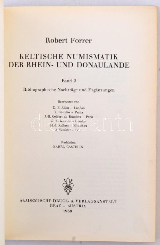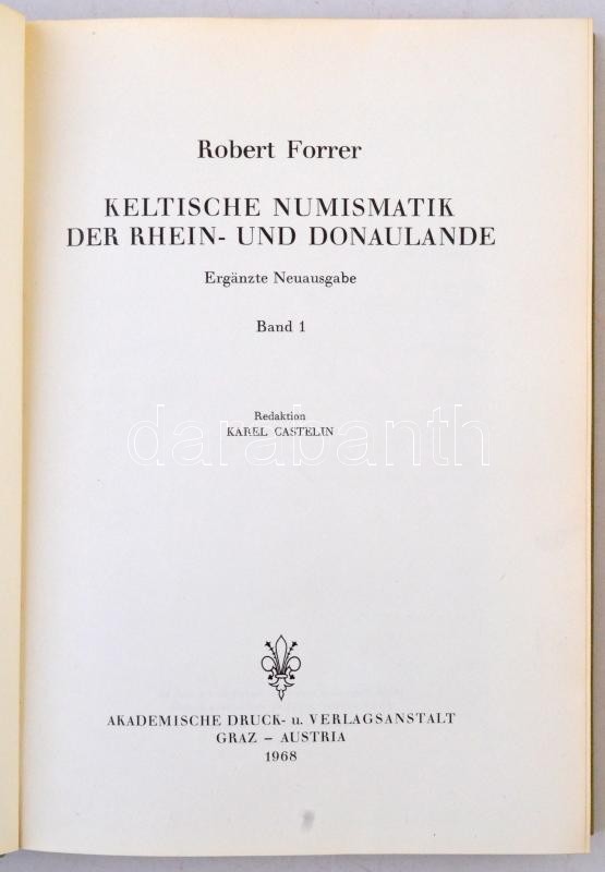 Robert Forrer: Keltische Numizmatik der Rhein- und Donaulande I-II. Akademische Druck- und Verlagsanstalt, Graz, 1968-1969. Szép állapotúak.