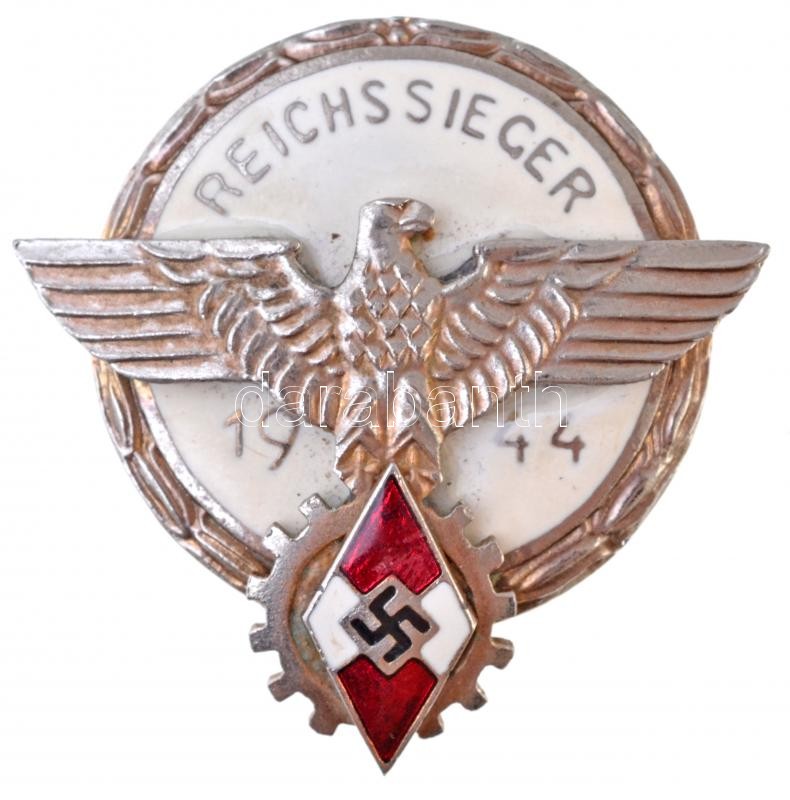 Német Harmadik Birodalom 1944. "Reichssieger" ezüstözött, zo... https://www.darabanth.com/en/327-Online-auction/327.0/Numismatics/Replicas-and-counterfeits~2000018/Nemet-Harmadik-Birodalom-1944-Reichssieger-ezustozott-zomancozott-fem-Hitlerjugend-jelven~II1824780