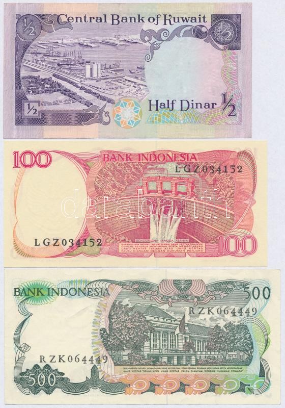 Indonézia 1982. 500R + 1984. 100R + Kuvait 1980. (1968) 1/2D T:I-,III
