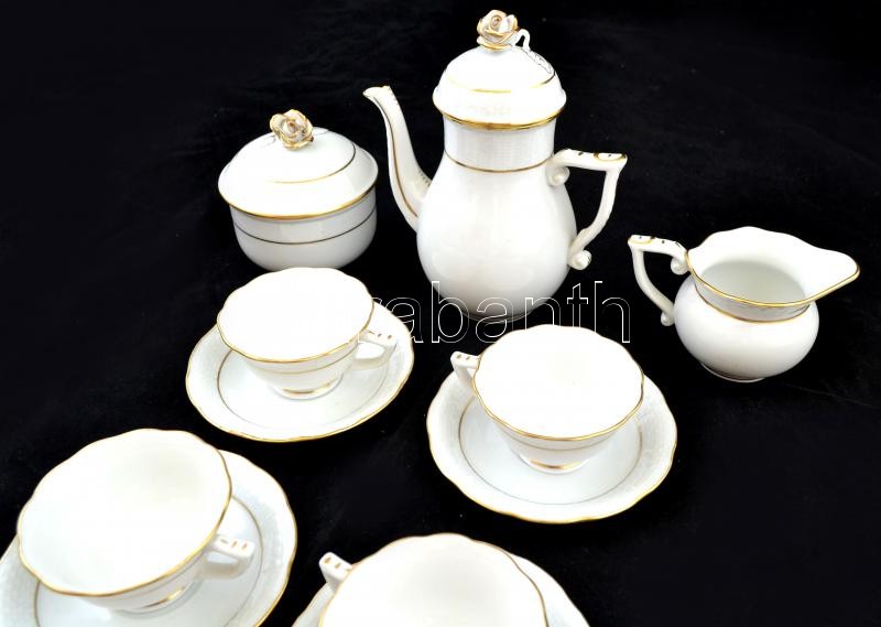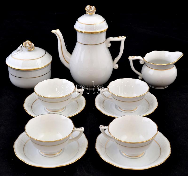 Herendi négy személyes mokkás készlet, kézzel festett, jelzett, rózsán apró lepattanással