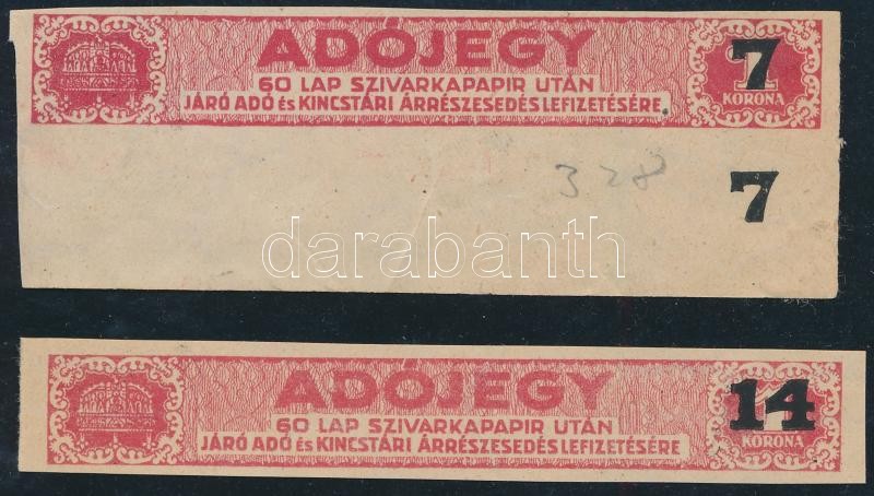 cca 1920 2 db felülnyomott szivarkapapír adójegy
