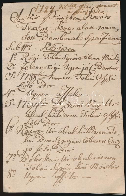 https://www.darabanth.com/en/327-Online-auction/327.0/Other-collectibles/Documents~1500016/1794-A-gyomroi-Wartensleben-grofi-uradalom-kis-pincejeben-maradott-borok-specifikacioja-list~II1824308