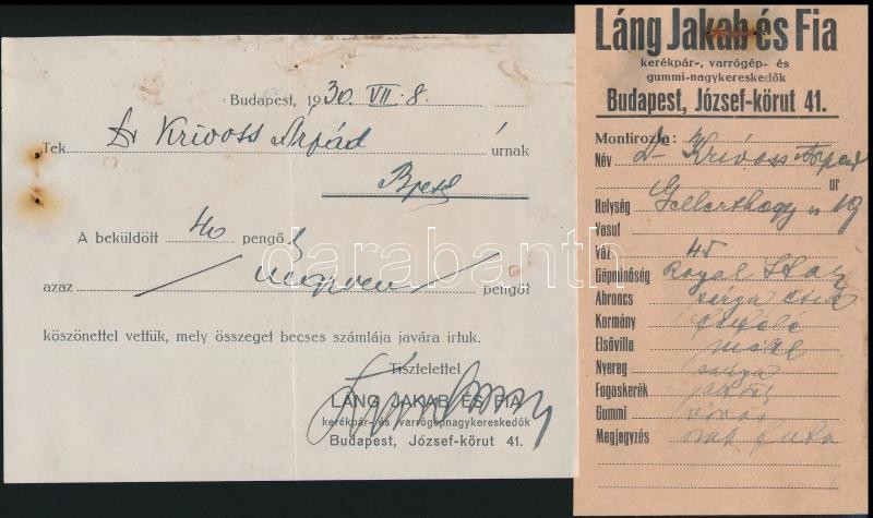 https://www.darabanth.com/en/327-Online-auction/327.0/Other-collectibles/Documents~1500016/cca-1930-Lang-Jakab-es-Fia-kerekpar-varrogep-es-guminagykereskedok-altal-kiallitott-2-~II1823582