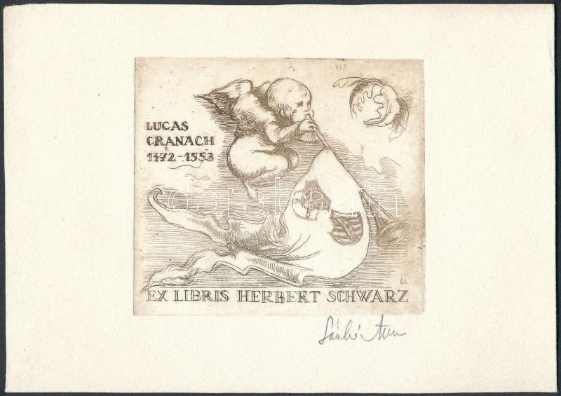 László Anna (1946-): Ex libris Herbert Schwarz. Rézkarc, papír, jelzet...